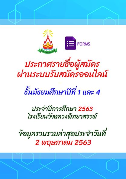 ประกาศรายชื่อผู้สมัครผ่านระบบรับสมัครออนไลน์ ชั้นมัธยมศึกษาปีที่ 1 และ 4 ประจำปีการศึกษา 2563