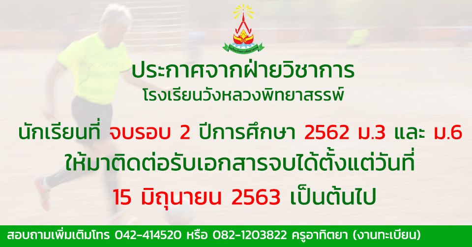 นักเรียนที่จบรอบ 2 ปีการศึกษา 2562 ม.3 และ ม.6 ให้มาติดต่อรับเอกสารจบได้ตั้งแต่วันที่ 15 มิถุนายน 2563