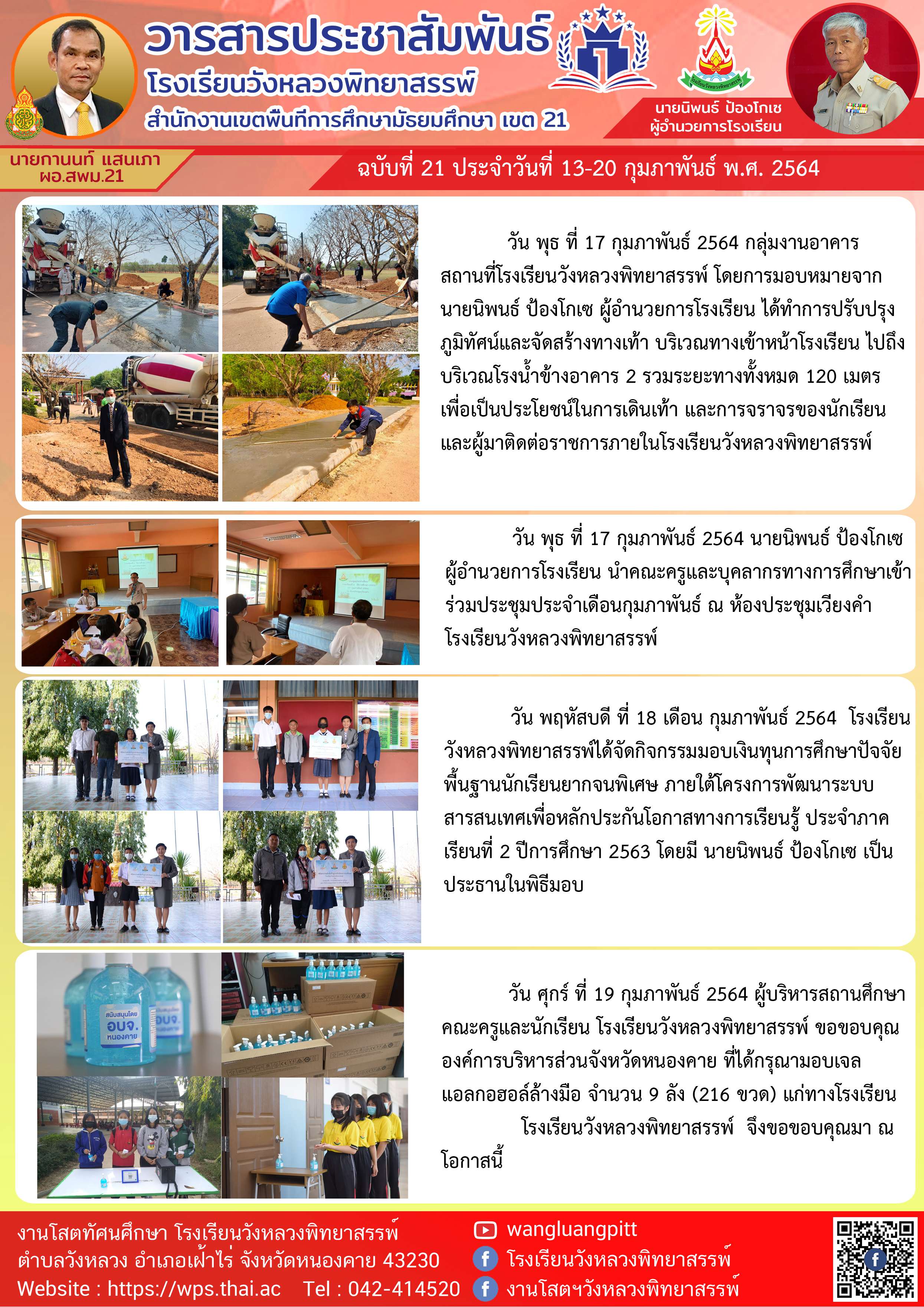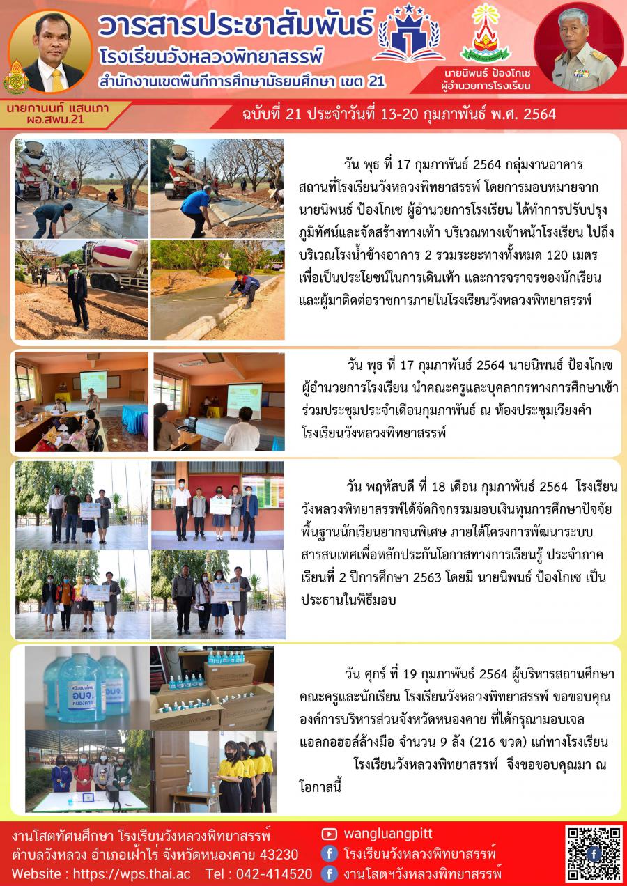 #จดหมายข่าว ฉบับที่ 21 ประจำวันที่ 13-20 กุมภาพันธ์ พ.ศ. 2564