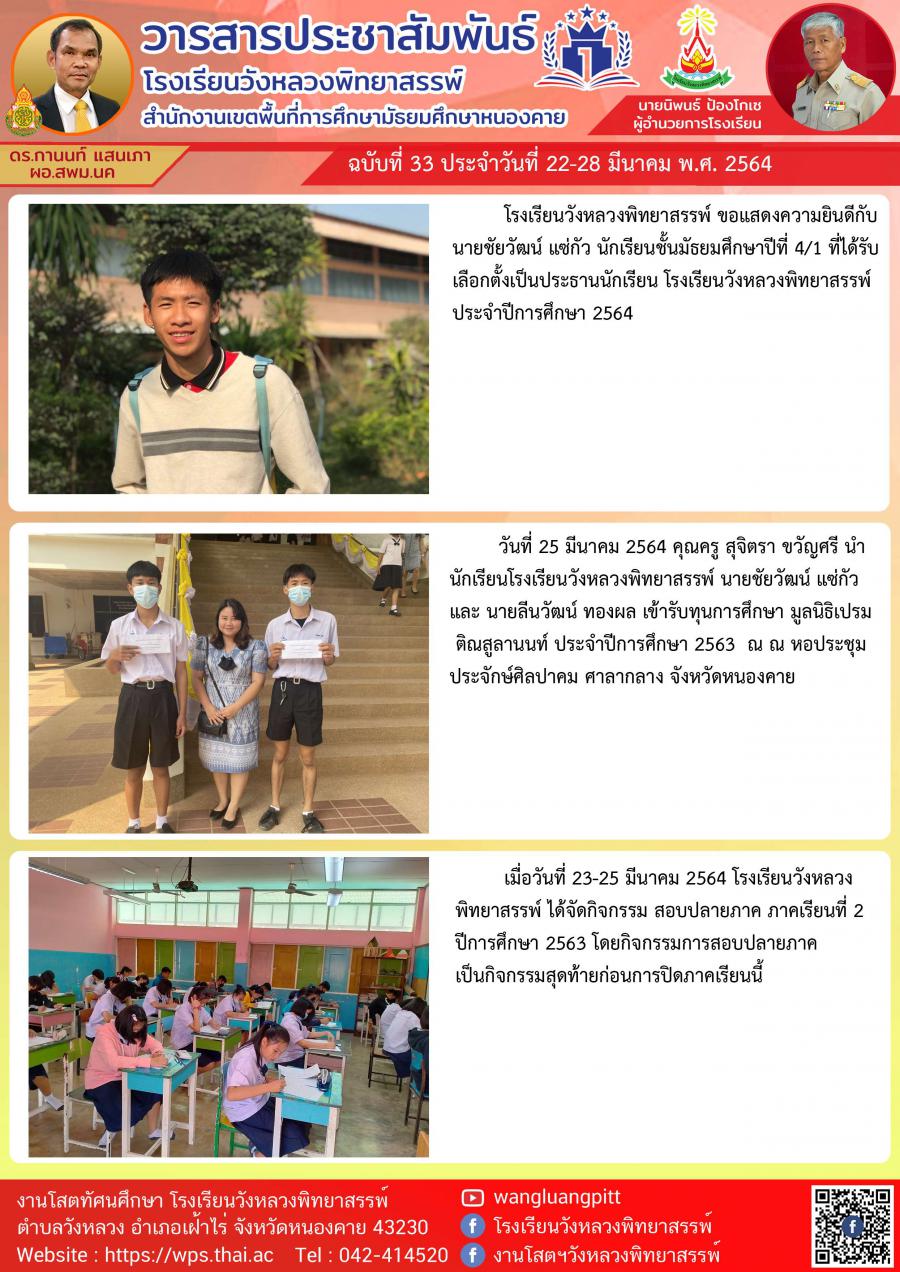 ฉบับที่ 33 ประจำวันที่ 22-28 มีนาคม พ.ศ. 2564